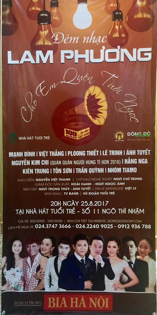 Ngày 09 tháng 08 năm 2017, Nhà hát Tuổi trẻ cùng công ty Đông đô Show đã họp báo ra mắt dự án “100 năm Âm nhạc Việt Nam”. Dự án “100 năm âm nhạc Việt Nam” gồm 24 số biểu diễn, được xem như series chương trình âm nhạc do các nghệ sĩ, ca sĩ đã và đang thuộc đoàn ca múa nhạc của Nhà hát Tuổi trẻ biểu diễn, định kỳ 1 tháng một số. Số đầu tiên của dự án là đêm nhạc Lam Phương “Cho em tuổi ngọc” diễn ra vào 20h ngày 25-8 tại sân khấu Nhà hát Tuổi trẻ với sự tham gia của các ca sĩ: Mạnh Đình, Ánh Tuyết, Kiên Trung, Tôn Sơn cùng hai giọng hát tuổi teen Kim Chi và Minh Khôi.