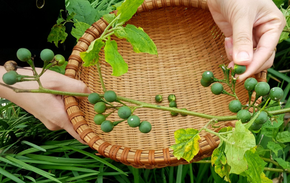 Điểm độc đáo là nhiều vùng Mường còn cho da trâu nướng và quả cà đắng vào nồi canh. Da trâu được hơ qua than cho cháy xém, cạo sạch rồi thái mỏng; khi nấu, lớp da ấy dần mềm, quện với vị nhớt của bon tạo độ dai giòn sần sật – ăn vào vừa béo vừa thơm mùi khói rừng. Còn quả cà đắng – nhỏ chỉ bằng đầu đũa, xanh sẫm, khi cắn “nổ nhẹ” trong miệng, vị đắng lan ra rồi ngọt hậu lại, khiến người từng ăn một lần nhớ mãi. Người Thái nói vui: “Cà càng đắng, tình càng sâu”, bởi cái vị ấy như cuộc sống nơi rừng núi – có chát, có cay, nhưng hậu vị thì dịu ngọt và nồng nàn.