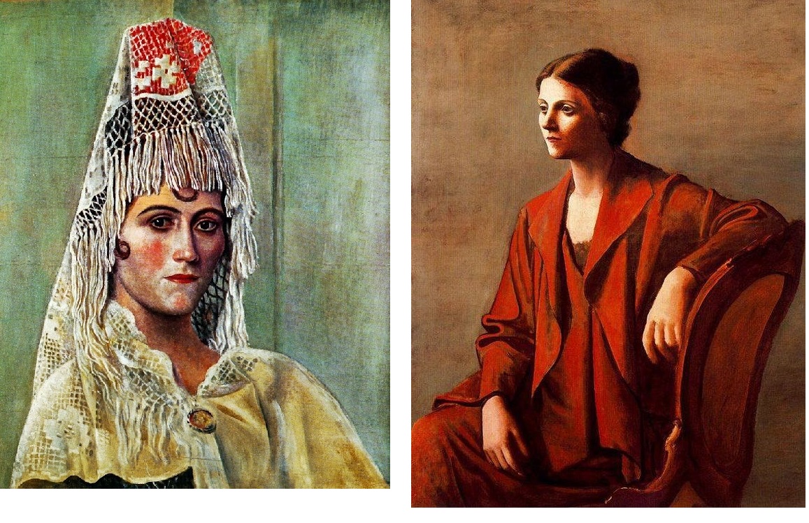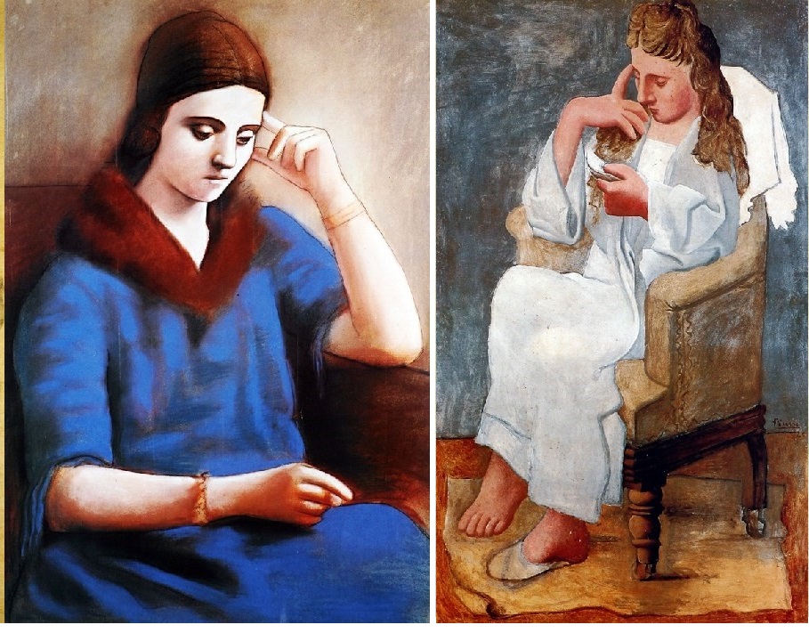Dường như vẻ đẹp thánh thiện của Olga Khokhlova đã làm cho Picasso trở về với phong cách cổ điển. Ông đã vẽ rất nhiều chân dung của bà theo phong cách này và sau đó là những chân dung cách tân với những thử nghiệm kỹ thuật mới như bức tranh “ Olga ngồi trên ghế” (Olga dans un fauteuil ”).