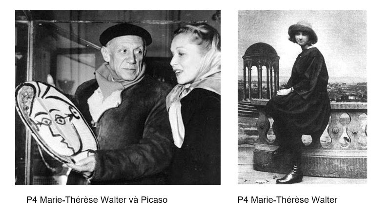 Marie-Thérèse Walter là người Pháp, bà gặp Picasso khi mới 17 tuổi ở một triển lãm tranh. Picasso đã yêu bà ngay từ cái nhìn đầu tiên và xúc động kêu lên:thưa cô, tôi sẽ đợi cô ở đây mỗi ngày vào lúc 6 giờ chiều. Rồi họ hẹn hò với nhau trong bí mật vì lúc đó Picasso đang sống với vợ là Olga Khokhlova và hơn nữa Marie Walter còn ở tuổi vị thành niên.