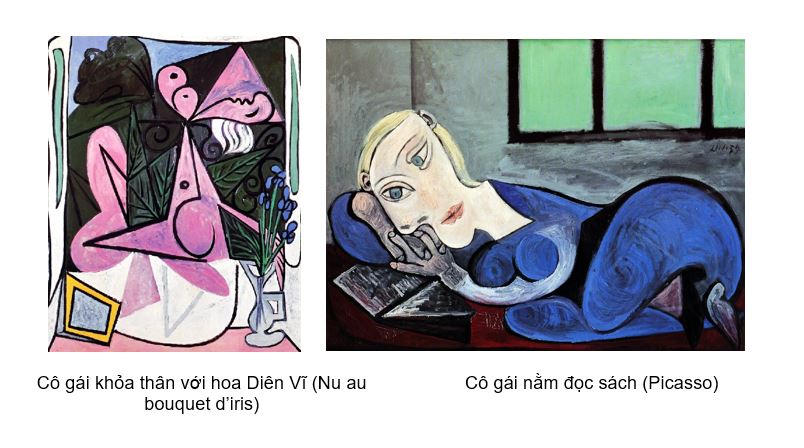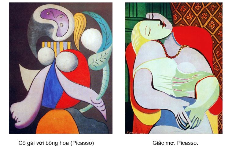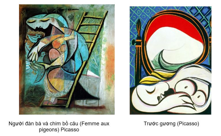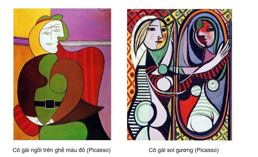 “Olga ngồi trên ghế (”Olga dans un fauteuil”) 1917. Bức tranh là thể nghiêm của Picasso. Thân hình của người phụ nữ dường như đã được cắt và dán trên một nền phẳng, không có chiều sâu.Vải của ghế gợi đến một tấm giấy.