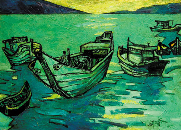 Tác phẩm Bến thuyền, tranh sơn dầu