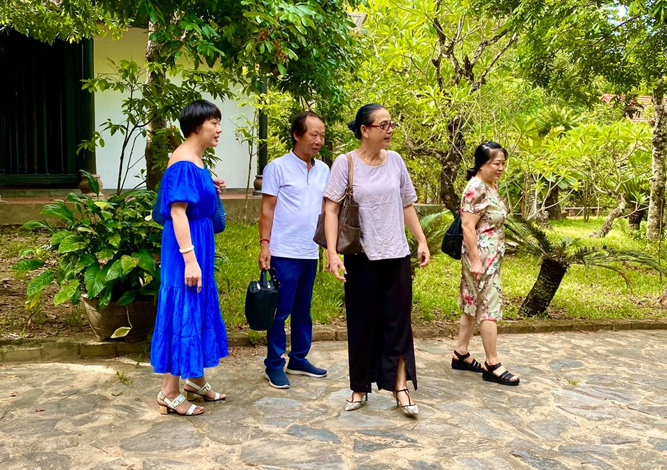 Đi tham quan qua các khu nhà, dường như gần gũi thêm, bà dẫn chúng tôi tới một ngôi nhà rường Huế rất đẹp, bên trong đang là gian thờ, bàn thờ cậu con trai của bà. Bà nhẹ nhàng kể: “Đến giờ nếu còn thì nó cũng 40 tuổi đấy. 10 tuổi sang Mỹ, và rồi đi học đến đại học, năm 2002, khi đi biển, nó thấy 3 người bị đuối nước, liền nhảy xuống cứu, cứu được 2 người, nó quay ra cứu người thứ ba thì cũng đuối luôn và ra đi cùng người đó.” Cuộc đời của bà rất nhiều cung bậc, gian truân, bà có 2 người con, cô con gái ở với bà một thời gian rồi cũng sang Mỹ học, nên bà qua lại Việt nam và Mỹ rất nhiều.