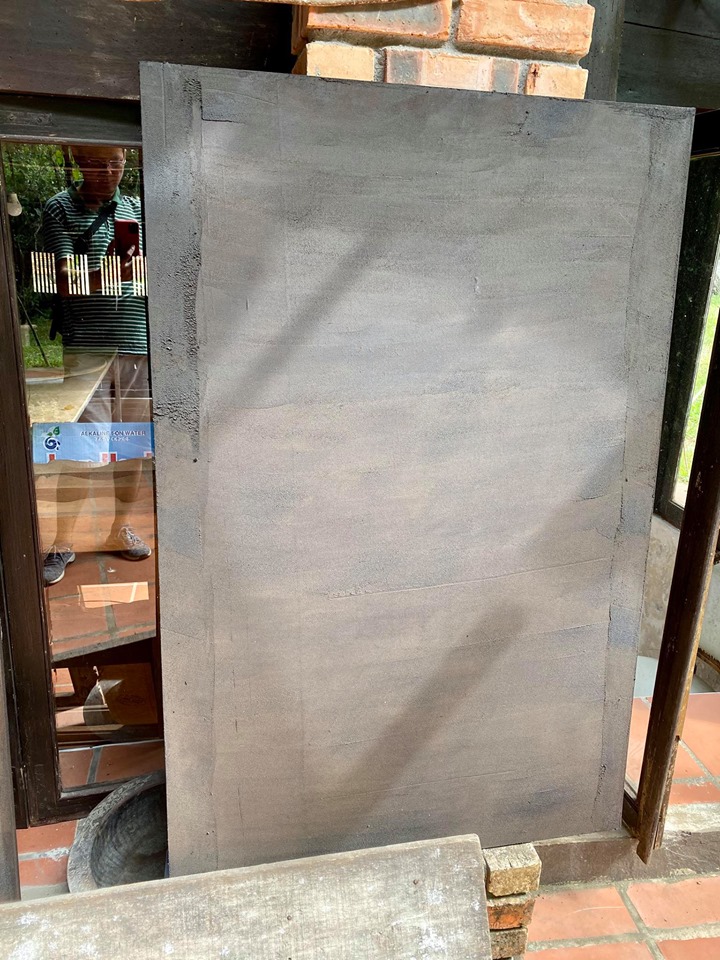 Một tấm vóc đang được sơn, chuẩn bị cho tranh
