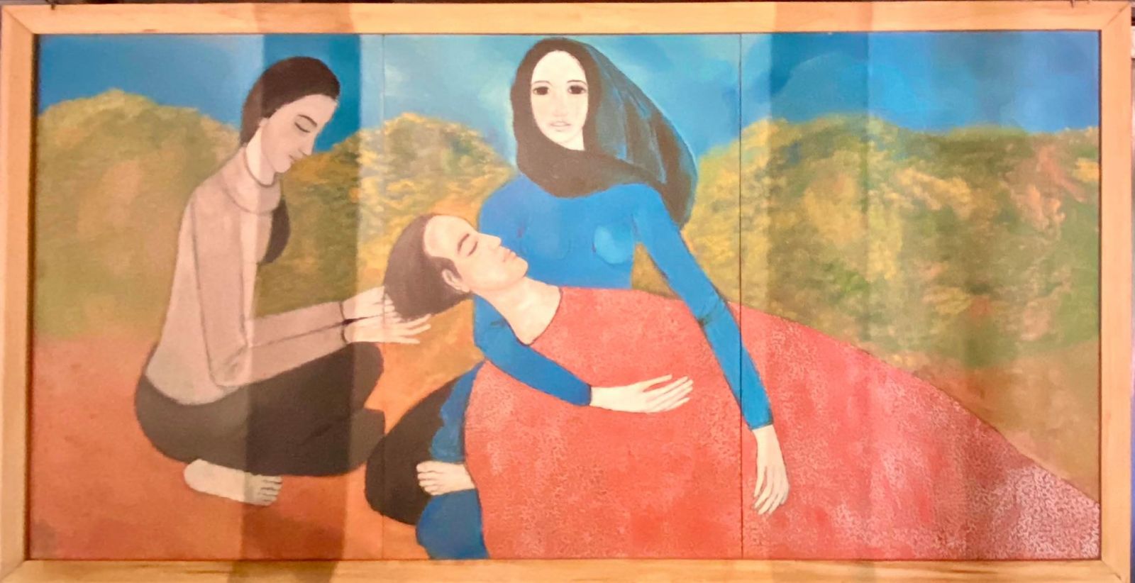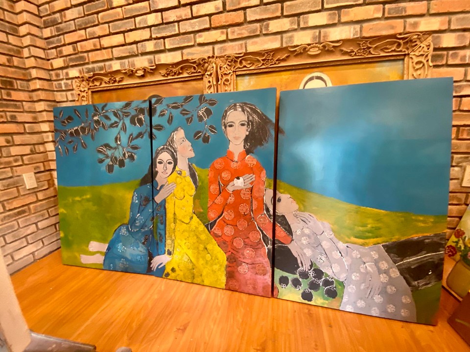 Tranh sơn mài các Thiếu nữ đang thực hiện