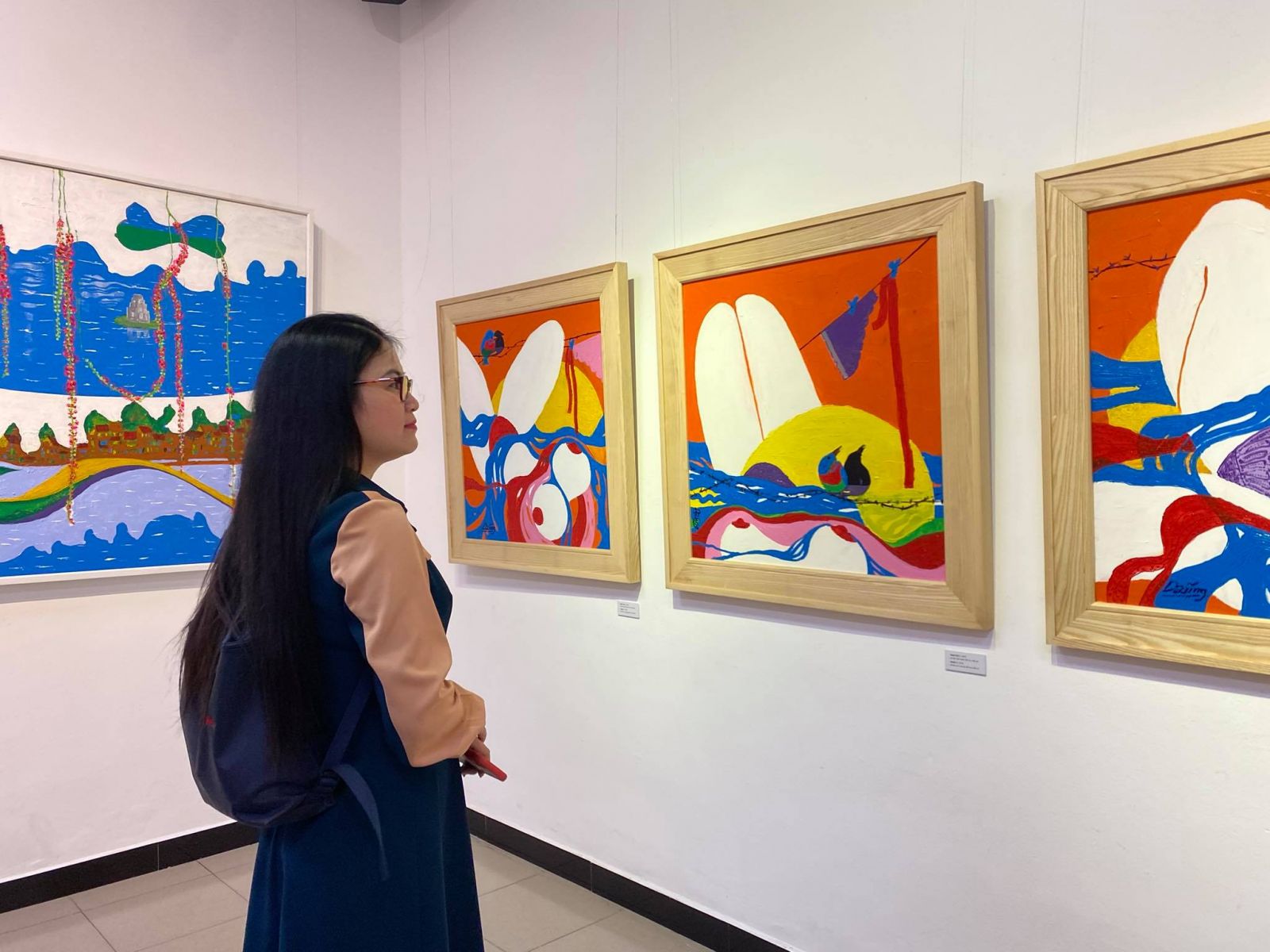 Các tác phẩm của họa sĩ Dũng Trống trưng bày tại triển lãm