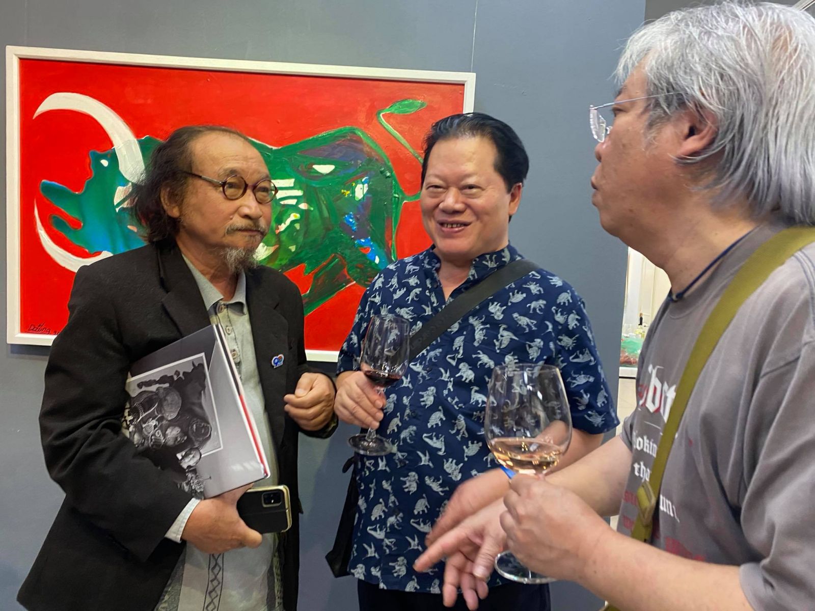 Họa sĩ Nguyễn Trọng, họa sĩ Lương Xuân Đoàn, Chủ tịch Hội Mỹ thuật Việt nam, họa sĩ Trịnh Sinh Nha, họa sĩ và họa sĩ Hoàng Đỗ Cường tại buổi khai mạc triển lãm