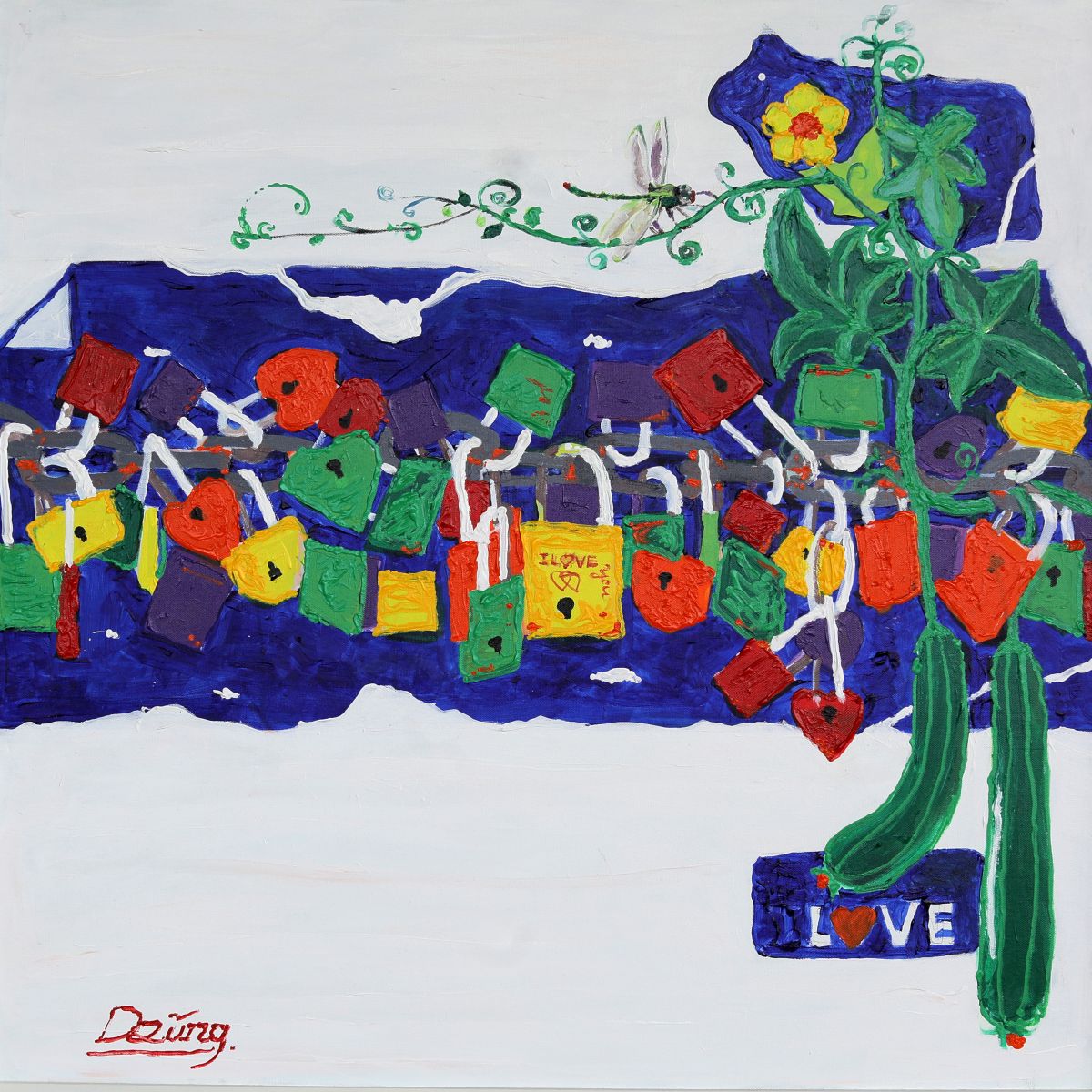 Gặp lại Dũng hôm nay, tôi đã xem tranh của Dũng, nó chất chứa tư duy, ý tưởng, bố cục, hình khối, màu sắc đầy ắp và chật cứng. Ý tưởng sáng tạo ào ạt, lớp lớp chồng chất đan xen nhau dày đặc cùng 1 lúc được thể hiện lên trên tác phẩm.