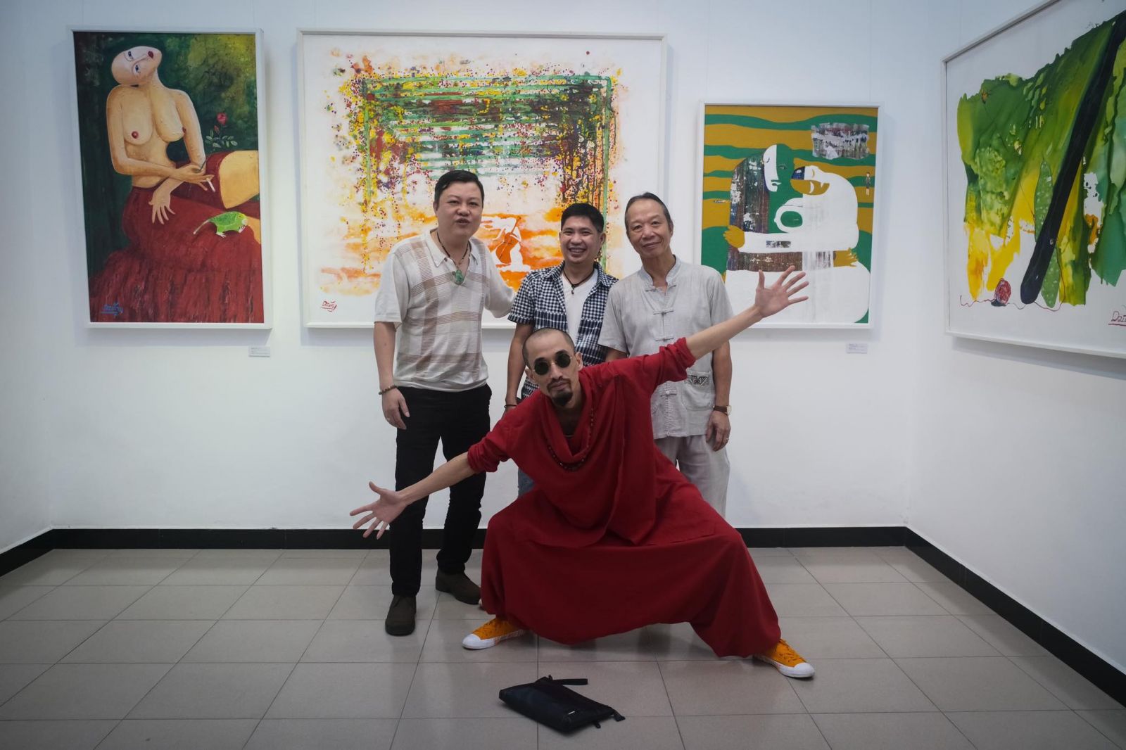 Các họa sĩ đàn anh tới chúc mừng (Đặng Thân, Trịnh Sinh Nha,...)