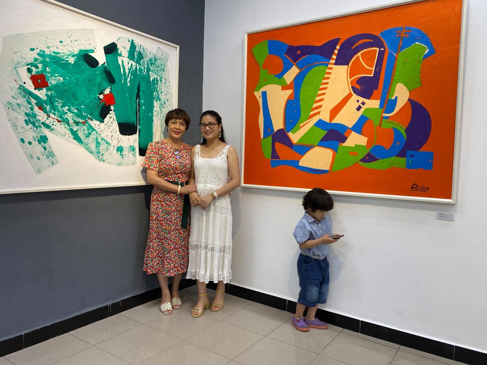 Khach chụp ảnh với tác phẩm