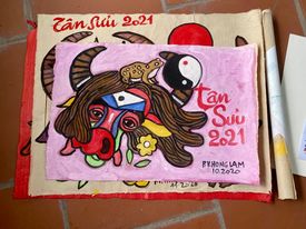 Năm nay họa sĩ vẽ tranh con giống, tranh con trâu cho năm Tân Sửu, khác với năm trước là cắt giấy, họa sĩ dùng chất liệu Bột màu trên giấy dó, và một số tranh lụa khổ nhỏ. Vừa là thay đổi chất liệu, nhưng cũng là sự chuẩn bị cho một loạt tranh mới của họa sĩ. “Giấy dó nhiều họa sĩ đã vẽ từ rất lâu rồi, họ vẽ bằng mực tàu, màu nước, với hiệu ứng của nhòe mực… nhưng tớ thử cách khác.” Cách khác của họa sĩ là dùng bột màu vẽ lên giấy dó. Giấy dó là một vật liệu, có thể chịu được rất tốt cả độ bền cơ học cũng như hòa quyện màu sắc, giúp cho họa sĩ có không gian sáng tác đầy mới lạ. “Tớ hy vọng sẽ có thể thành một hiện tượng mới với cách vẽ này.” Họa sĩ hào hứng chia sẻ.