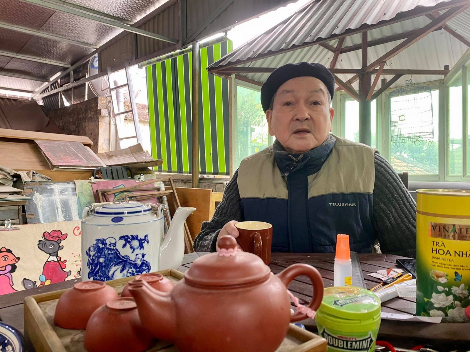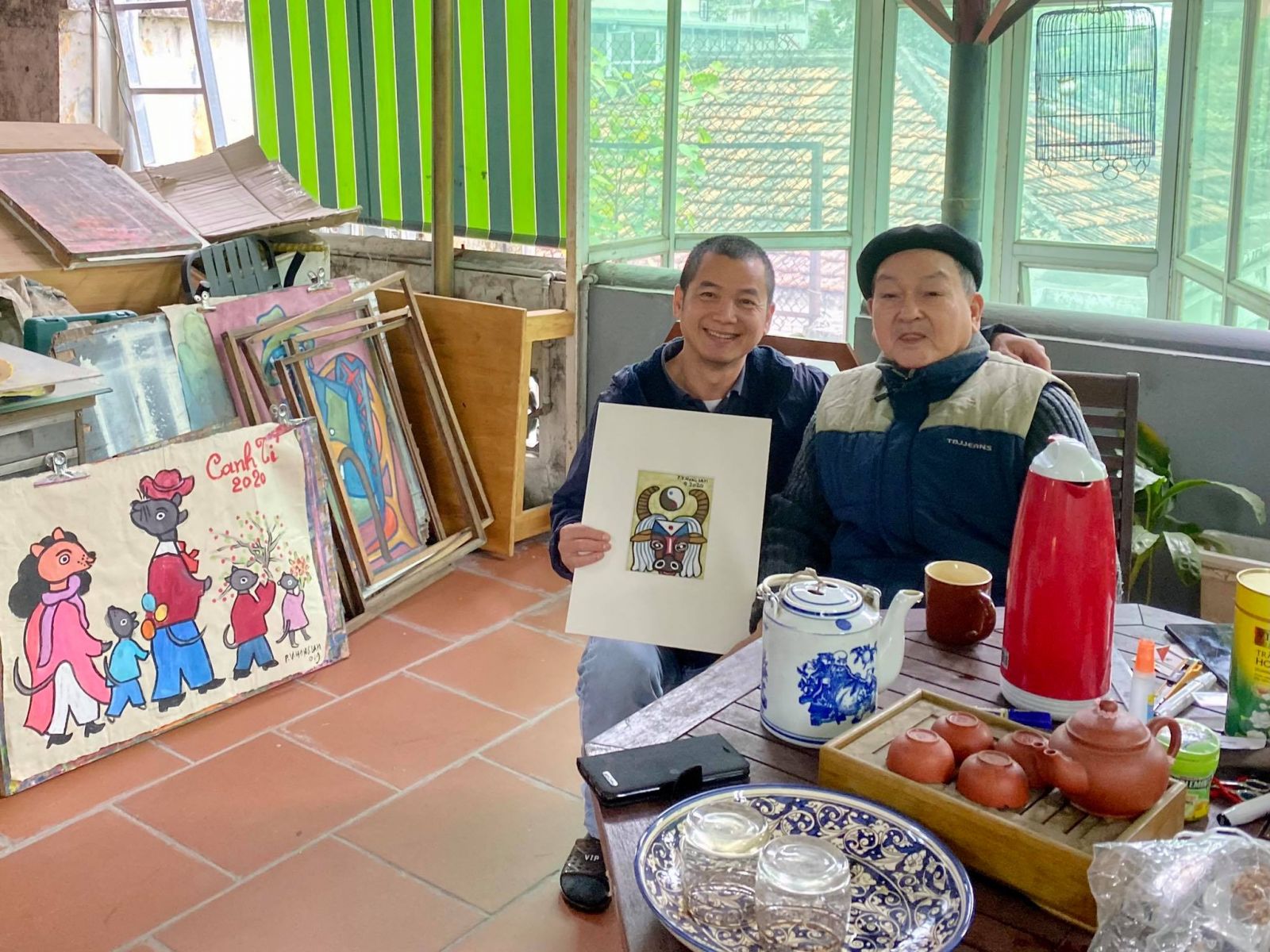 Họa sĩ trò chuyện bên ấm trà