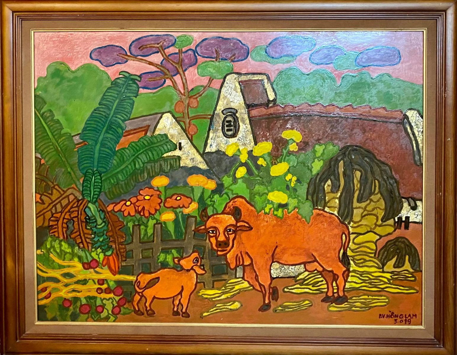 Là một họa sĩ gắn liền với nông thôn, trong thời gian chiến tranh, đi bộ đội, sơ tán, sáng tác, đi dạy, gắn liền với cuộc sống nông thôn. Con trâu rất gần gũi với họa sĩ Phạm Viết Hồng Lam. Con trâu lúa nước, chim vạc, con cóc, hạt lúa, bông mai, mùa vụ, ngày và đêm… đều được mô tả ẩn hiện trong tranh. Kết quả của lao động, hạnh phúc ấm no trong hình tượng đồng tiền cùng với tín ngưỡng của lễ hội…