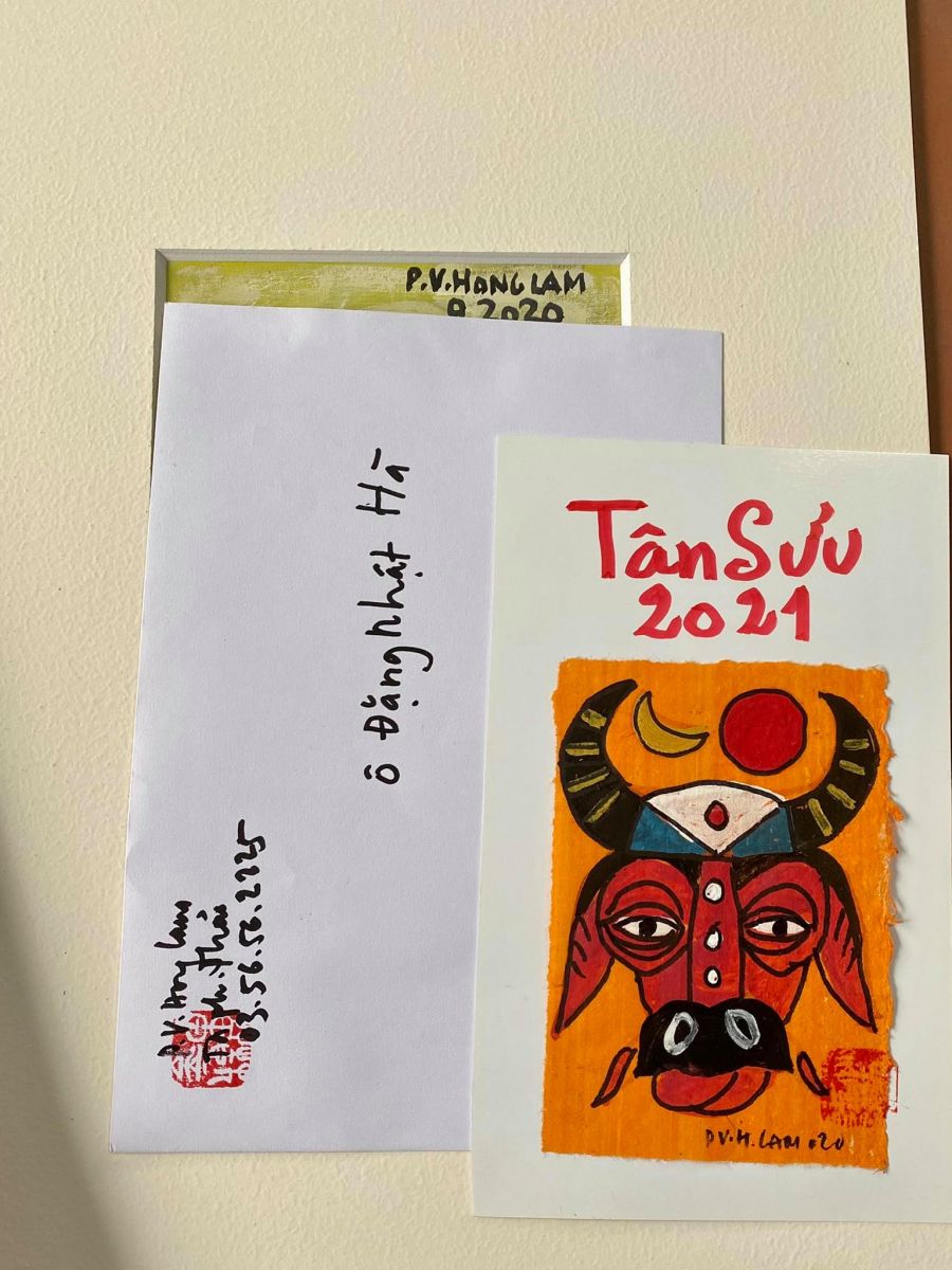 Họa sĩ Phạm Viết Hồng Lam có nhiều bạn bè yêu quý, cùng với rất nhiều học trò cũ của cụ Phạm Viết Song, học trò của hai vợ chồng họa sĩ, nên dù đã bước sang tuổi 75, những tuần cuối năm căn nhà cũ kỹ luôn đông khách tới thăm và “dắt trâu” về. “Tớ vẽ từ cuối tháng Tám năm 2020, hơn 250 bức tranh con trâu trên giấy dó, lụa.” Họa sĩ nói và kể tiếp: “Mấy tuần trước, mọi người tới lấy nhiều lắm, có người từ miền Nam ra, có người đòi lấy mấy bức liền, nhưng tớ không cho, chỉ 1 bức thôi, còn dành người khác.”