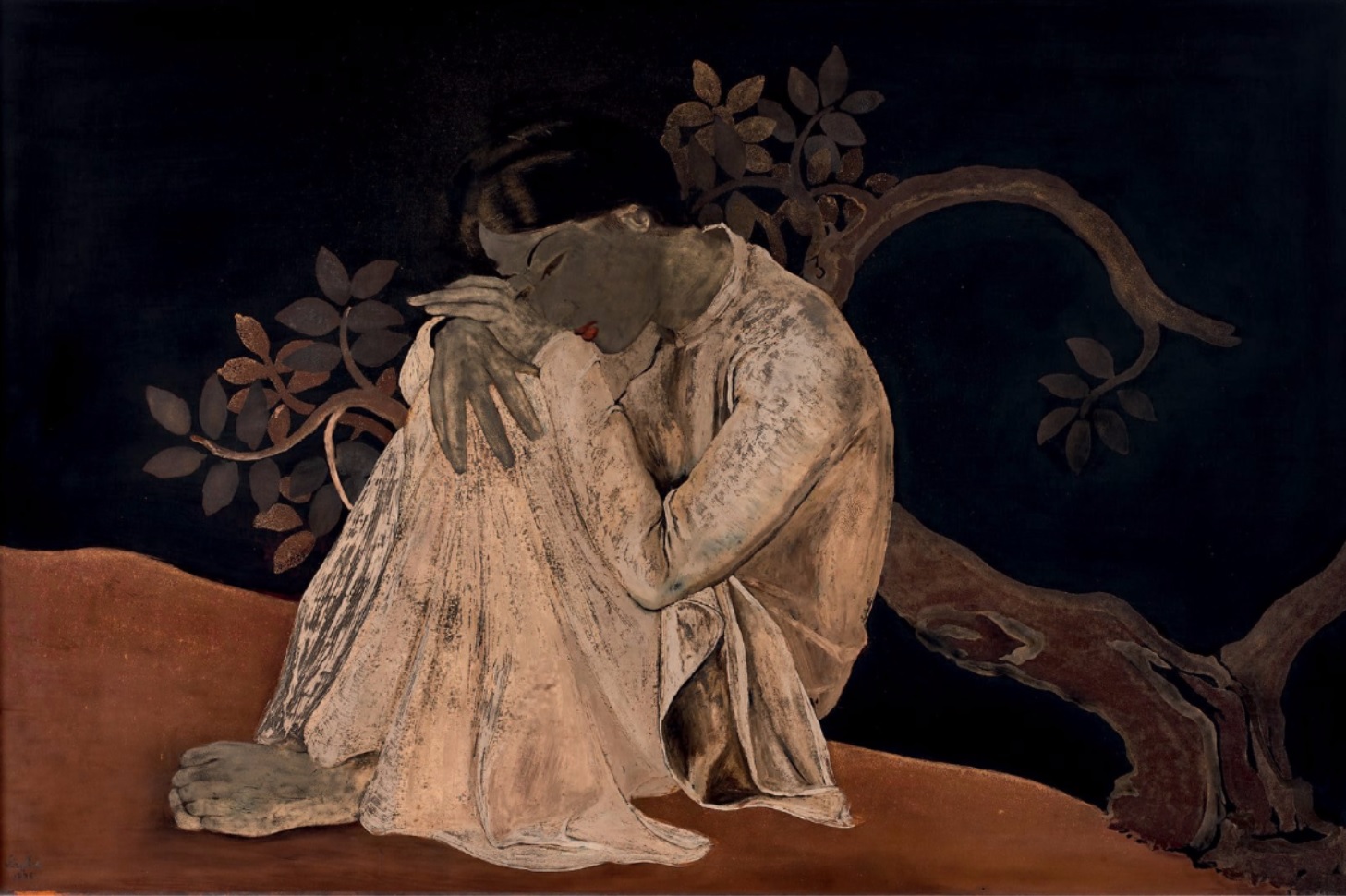 Bức sơn mài "Thiếu nữ mơ mòng" của Lê Phổ tuyệt đẹp