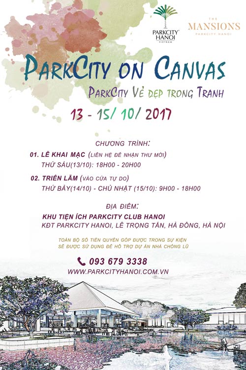 Từ ngày 11 đến 15/10/2017, Công ty cổ phần phát triển đô thị quốc tế Việt nam (VIDC) – chủ đầu tư dự án ParkCity Hanoi (đường Lê Trọng Tấn, Hà Đông, Hà Nội) sẽ tổ chức sự kiện sáng tác tranh từ thiện “ParkCity vẻ đẹp trong tranh” nhằm gây quỹ ủng hộ đồng bào lũ lụt. Với sự tham gia tự nguyện của 18 họa sĩ hiện đang sinh sống tại Hà Nội, sự tư vấn và đóng góp nhiệt tình của chương trình Nhà Chống Lũ và Việt Nam Art Space trong việc bán và đấu giá tranh, sự kiện này hứa hẹn sẽ là một trong những hoạt động cộng đồng giàu ý nghĩa và nhân văn, phù hợp với triết lý kinh doanh của ParkCity Hanoi đã và đang hướng tới vì cộng đồng.