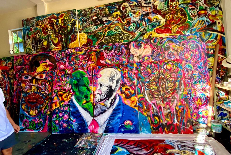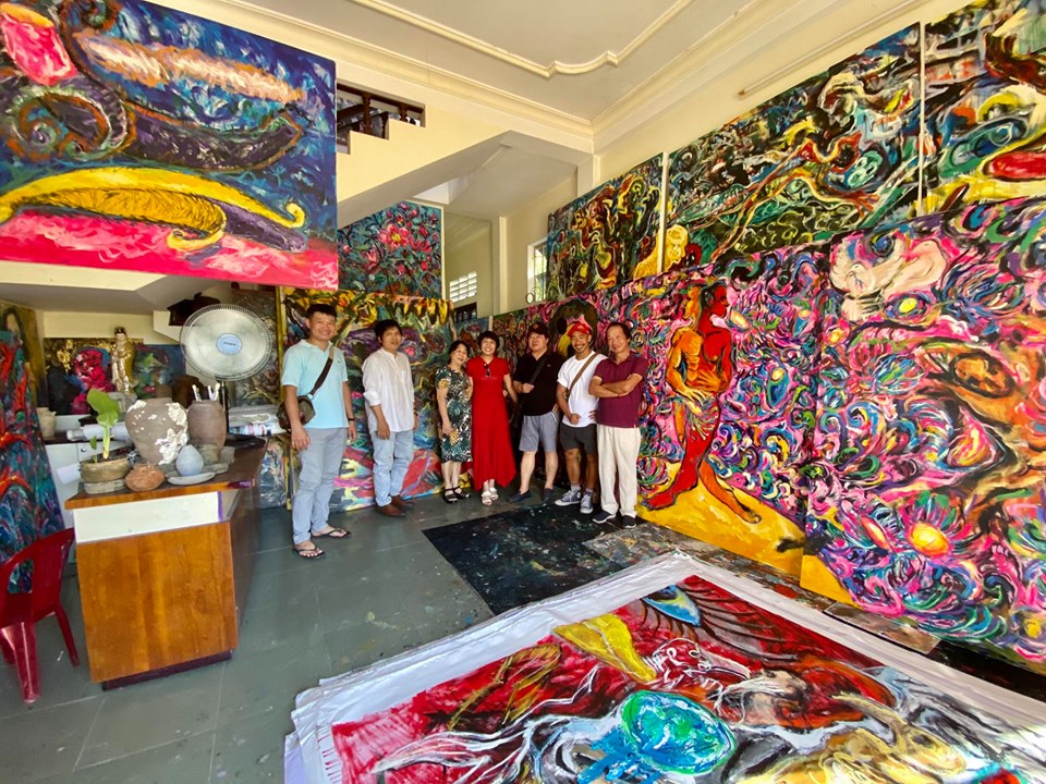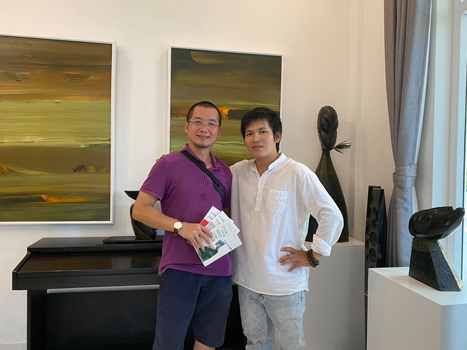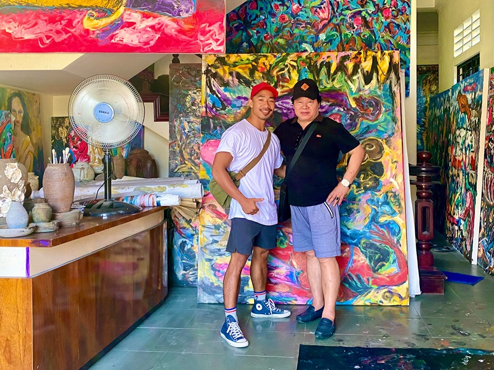 Họa sĩ Trịnh Sinh Nha và Phan Sang trong xưởng vẽ
