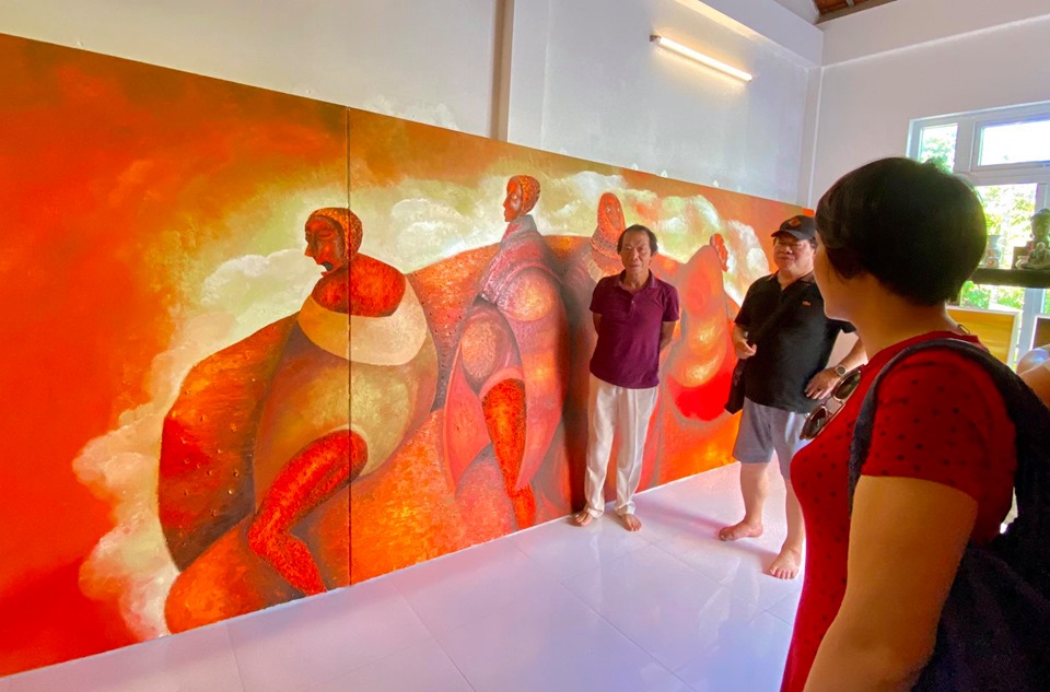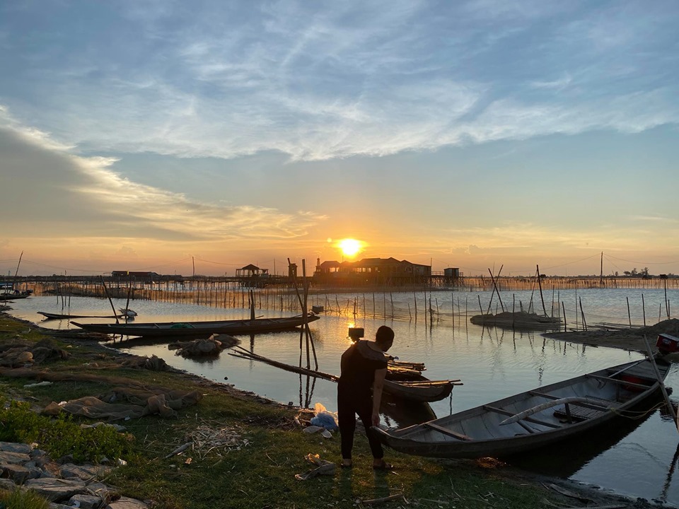 Rời nhà Sang, tất cả lặng lẽ, dường như sau hai xưởng tranh, ai cũng lao động vất vả vì... ngắm tranh vậy. "Thôi, giờ đi Phá Tam giang ngắm hoang hôn nhé?" Anh Dũng lên tiếng cắt dòng suy tưởng từ tranh của mọi người...